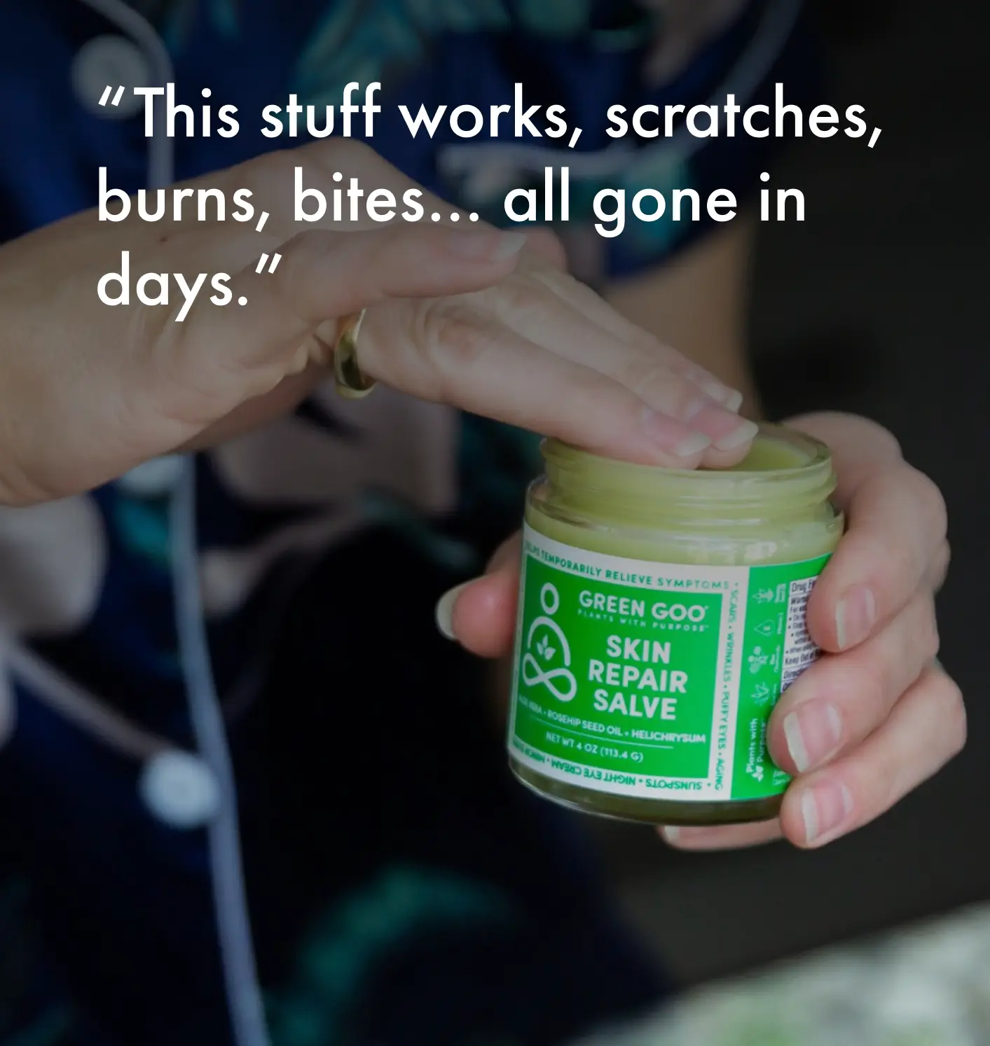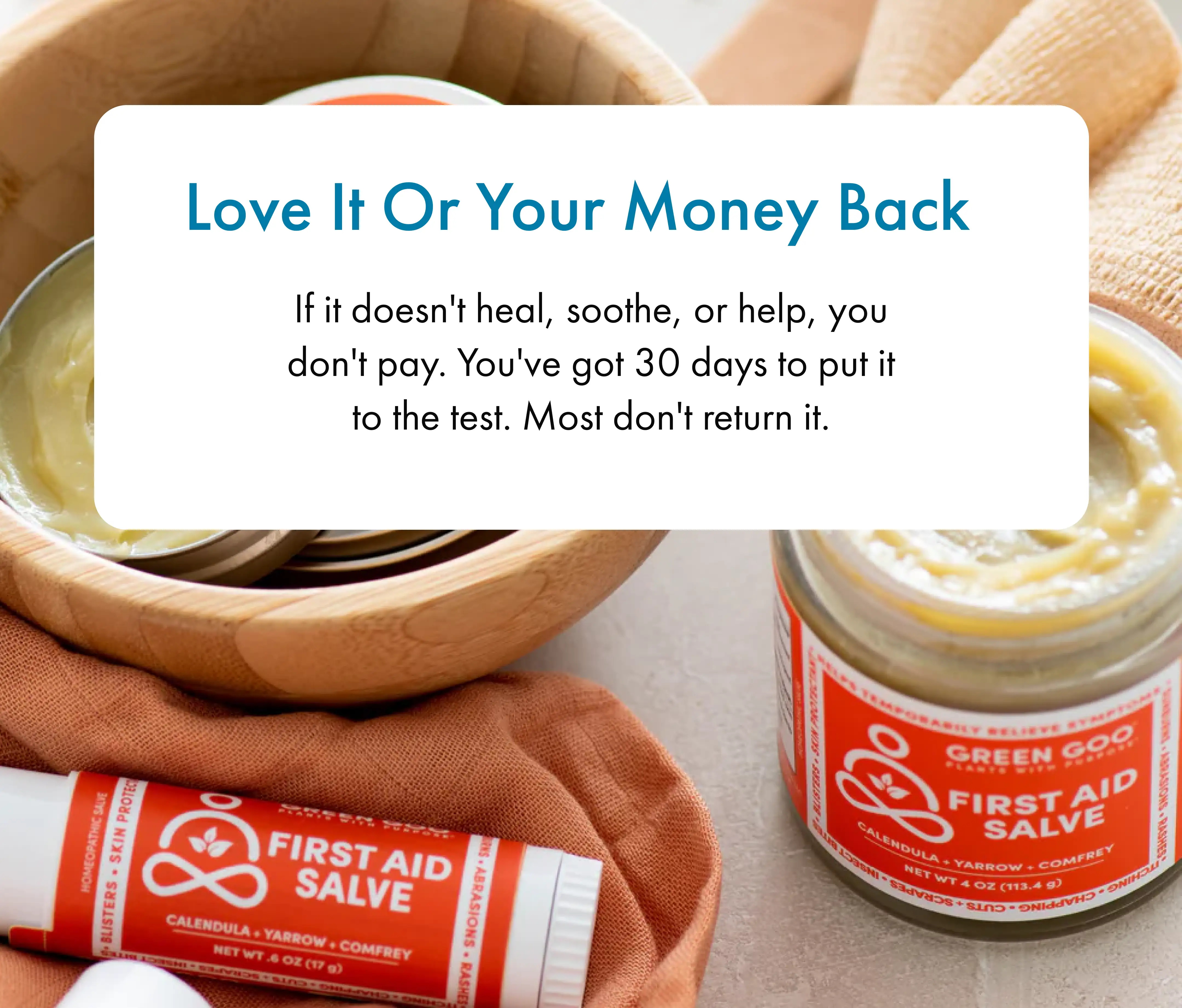 We believe one jar of Green Goo can change how you care for your skin, and we’re willing to prove it. If you don’t see and feel the difference in 30 days, we’ll give you a full refund.