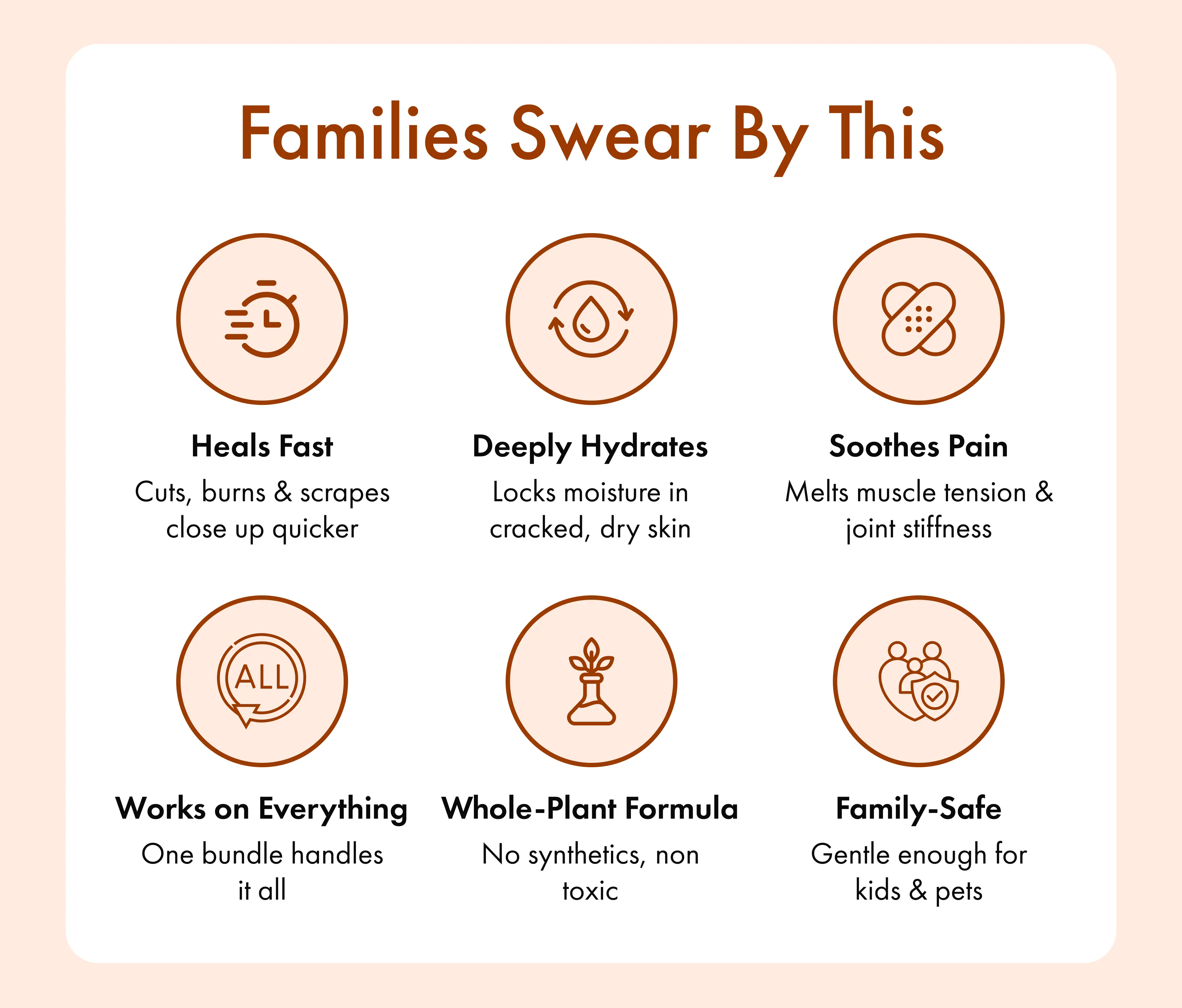 First Aid Salve: Clean the affected area. Apply a thin layer to cuts, scrapes, burns, or insect bites. Reapply 2–3x daily until healed. Safe for open wounds.