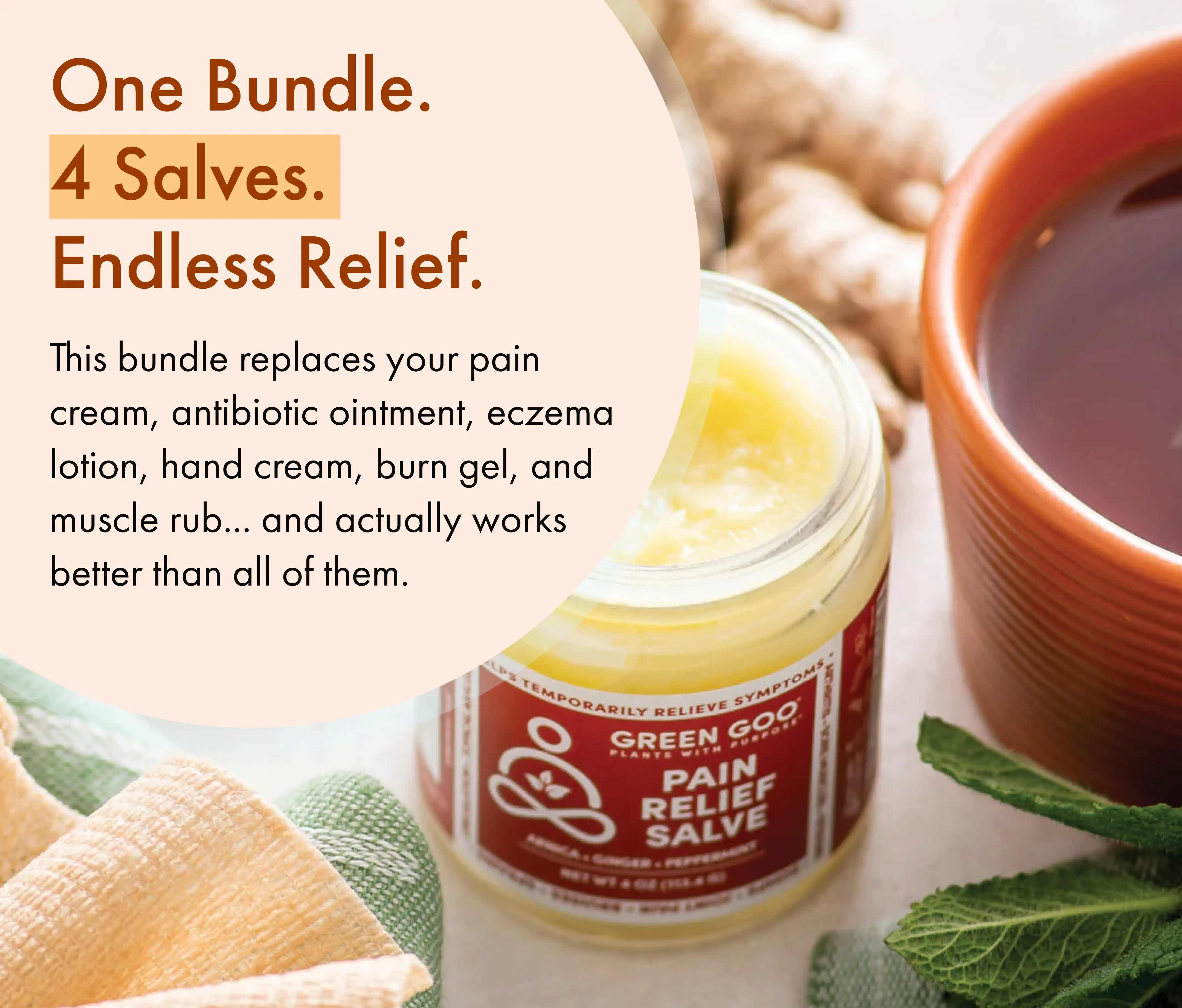 Pain Relief Salve: That cooling, warming sensation that melts tension within minutes.
