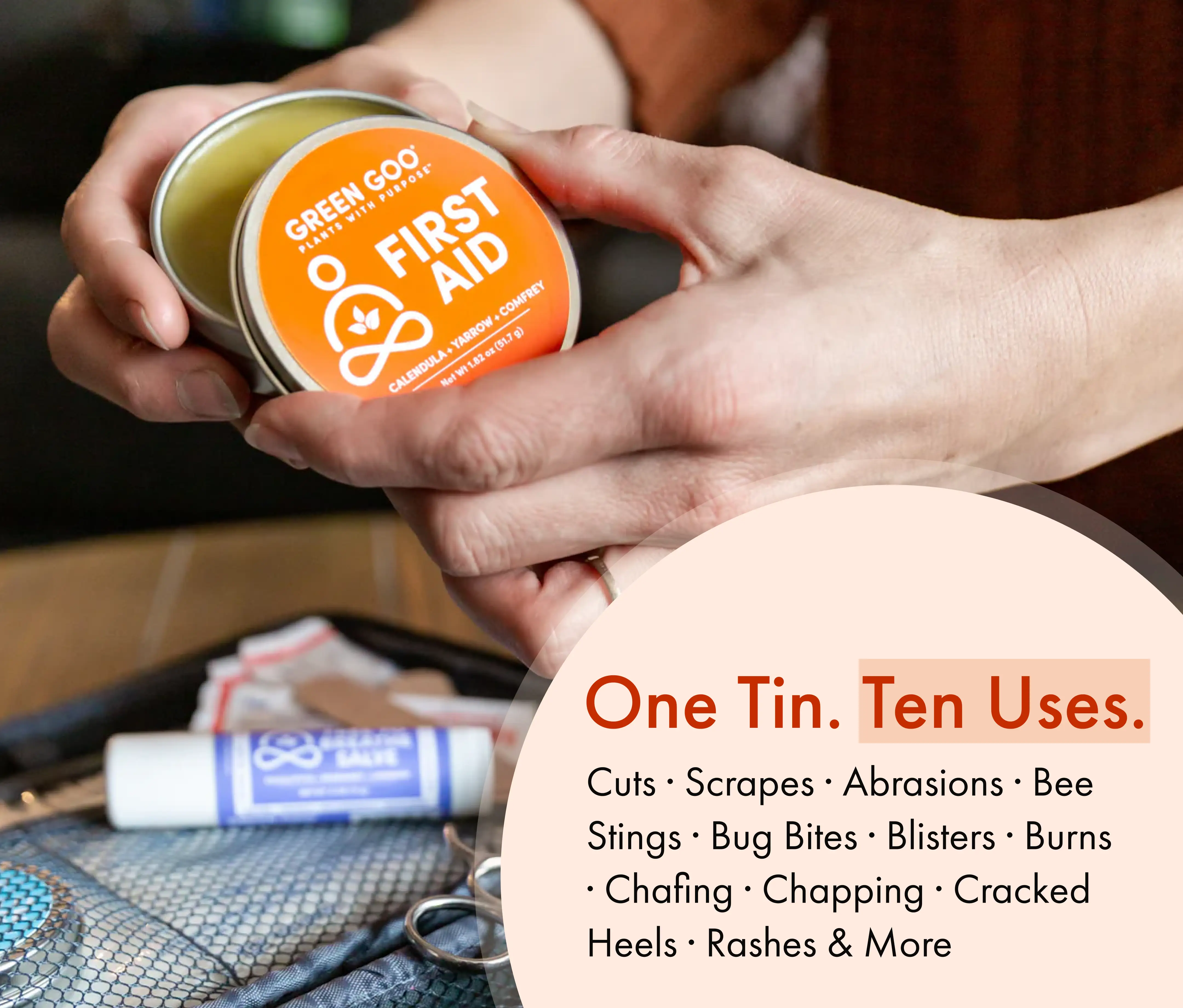 Ditch the drugstore drawer full of mystery ointments. This one clean jar handles the everyday ouches: scrapes, bites, chafing, sunburn, cracked heels, and more. We slow-infuse whole herbs into nourishing oils, then blend in small batches to preserve potency.