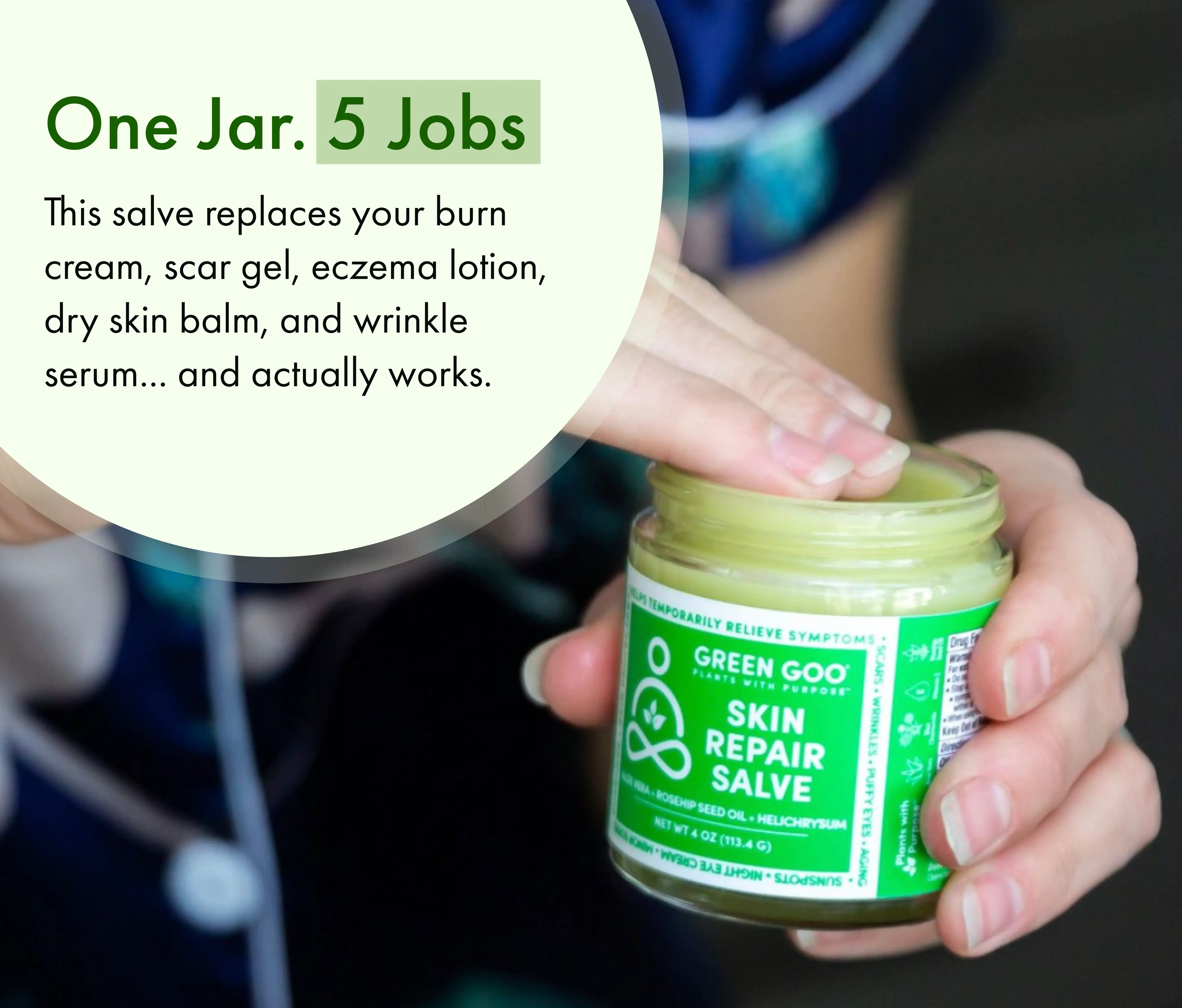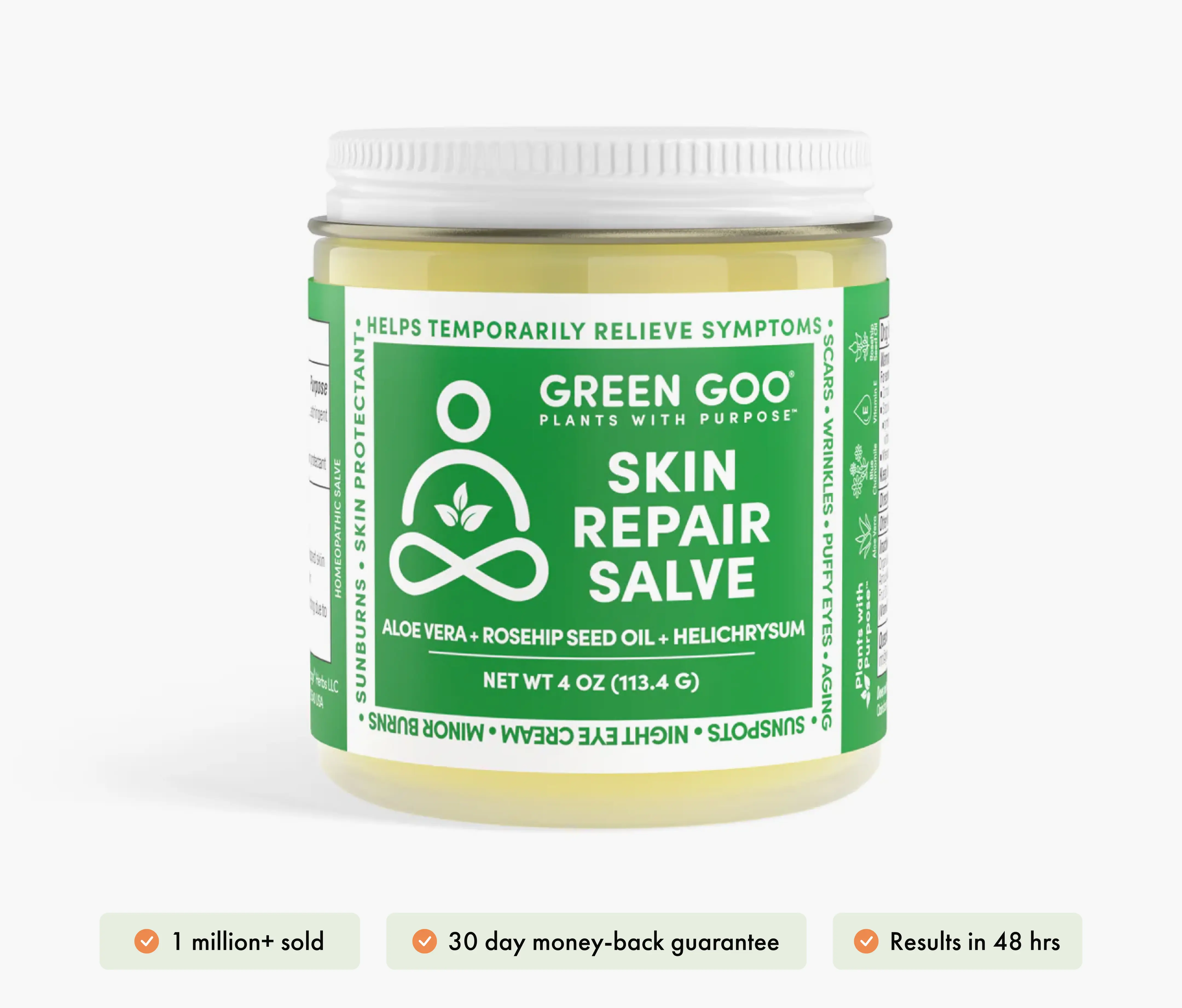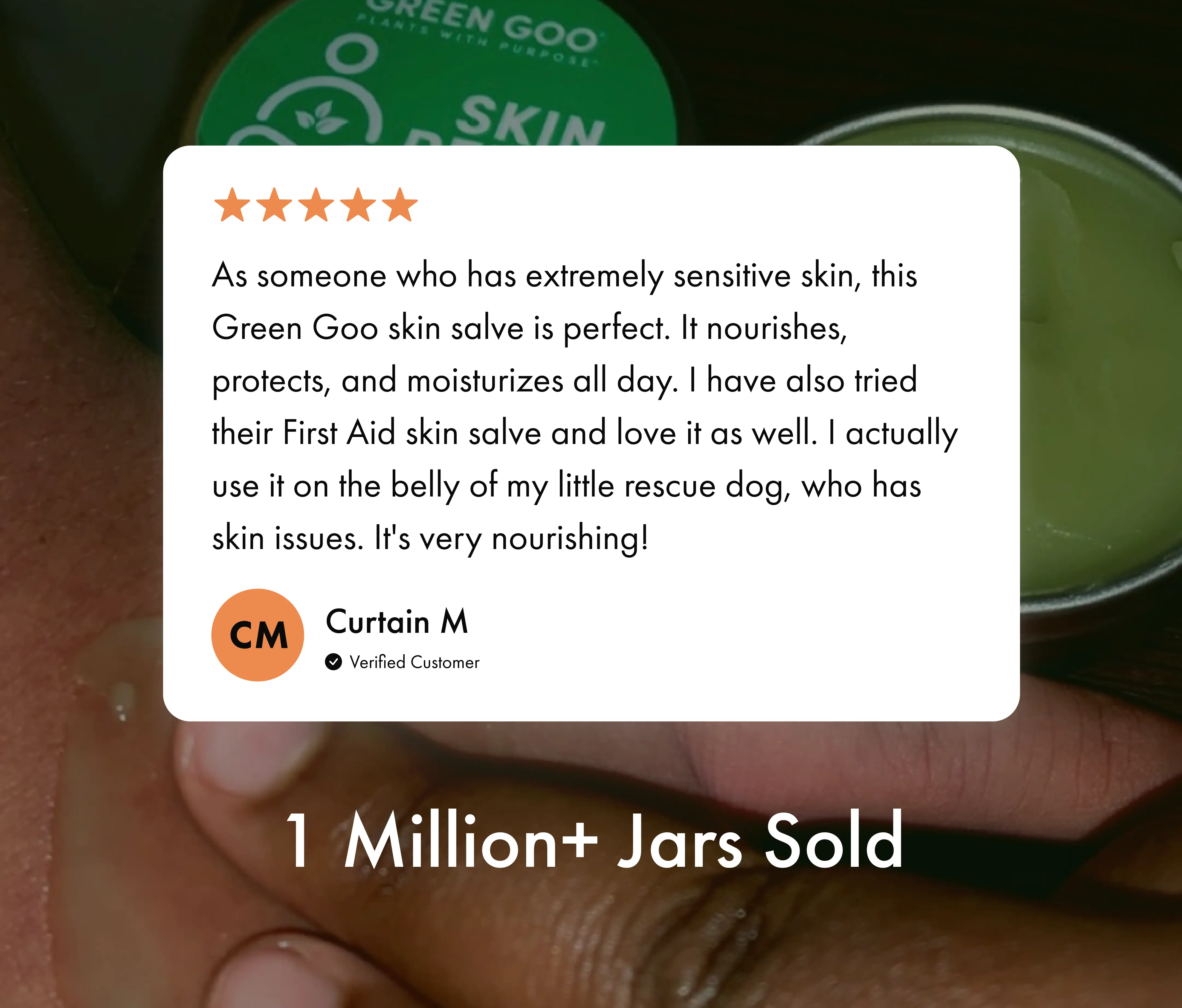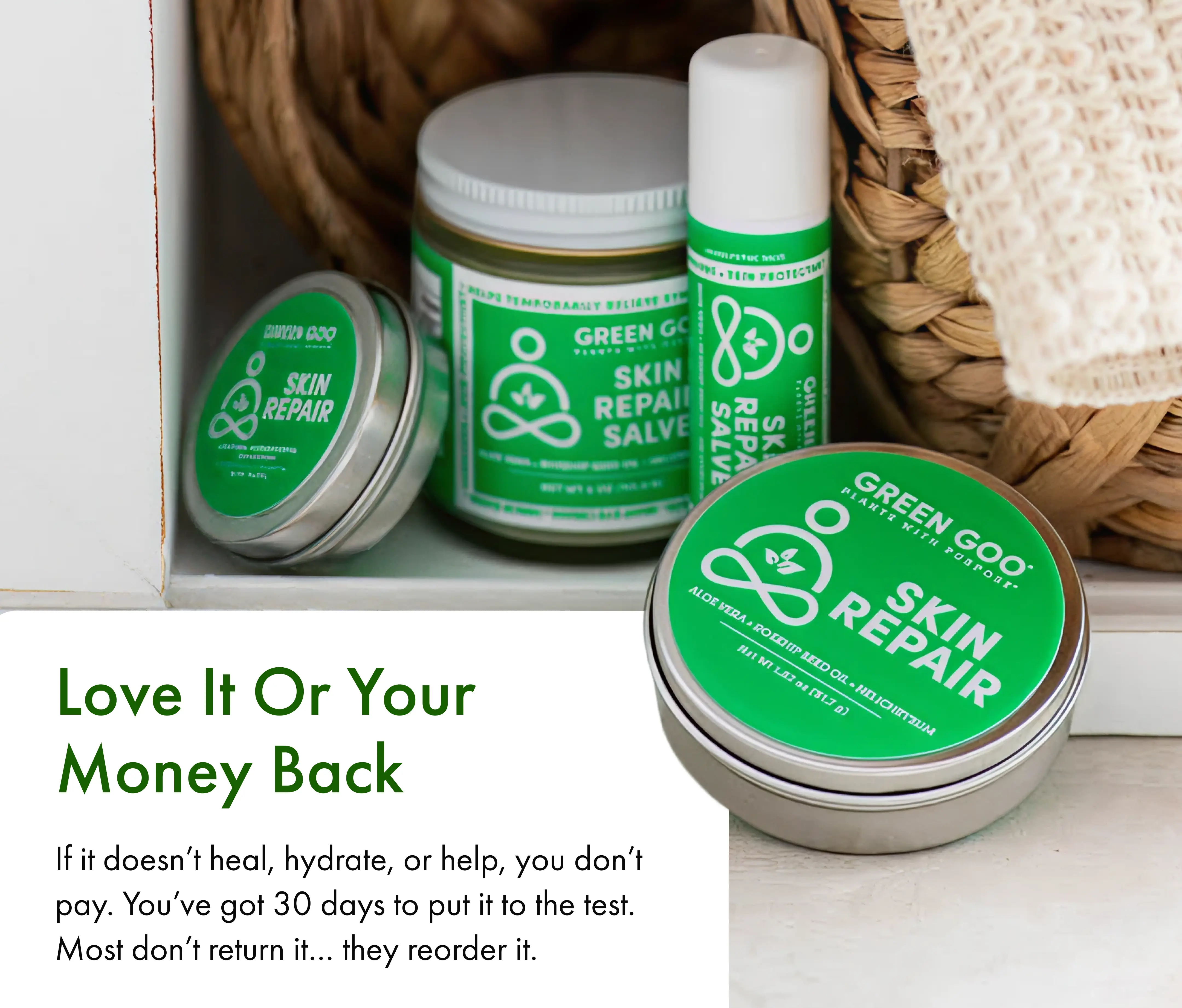 We believe one jar of Green Goo can change how you care for your skin, and we’re willing to prove it. If you don’t see and feel the difference in 30 days, we’ll give you a full refund.